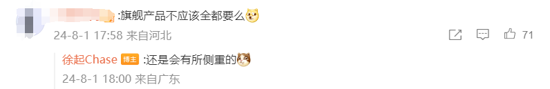 針對評論區網友“旗艦產品不應該全都要么”的提問,徐起表示,旗艦產品在配置上還是會有所側重。