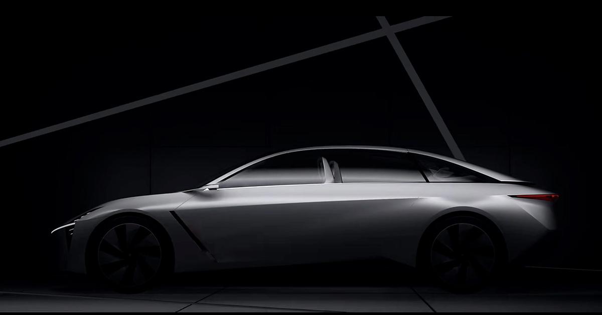 車身側(cè)面是溜背式的轎跑設(shè)計(jì),有著很大的C柱三角窗,C柱的落點(diǎn)很靠后,形成了短車尾的效果。而概念車的一大亮點(diǎn)是使用了鷗翼式的車門開(kāi)啟結(jié)構(gòu),前后排車門一體式,并且是無(wú)B柱設(shè)計(jì),不過(guò)這種設(shè)計(jì)結(jié)構(gòu)出現(xiàn)在量產(chǎn)版上的概率不會(huì)很大。