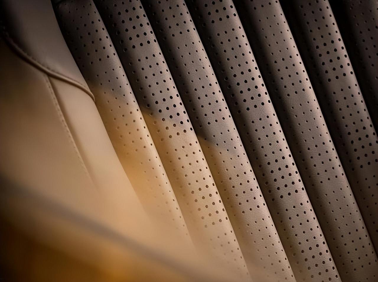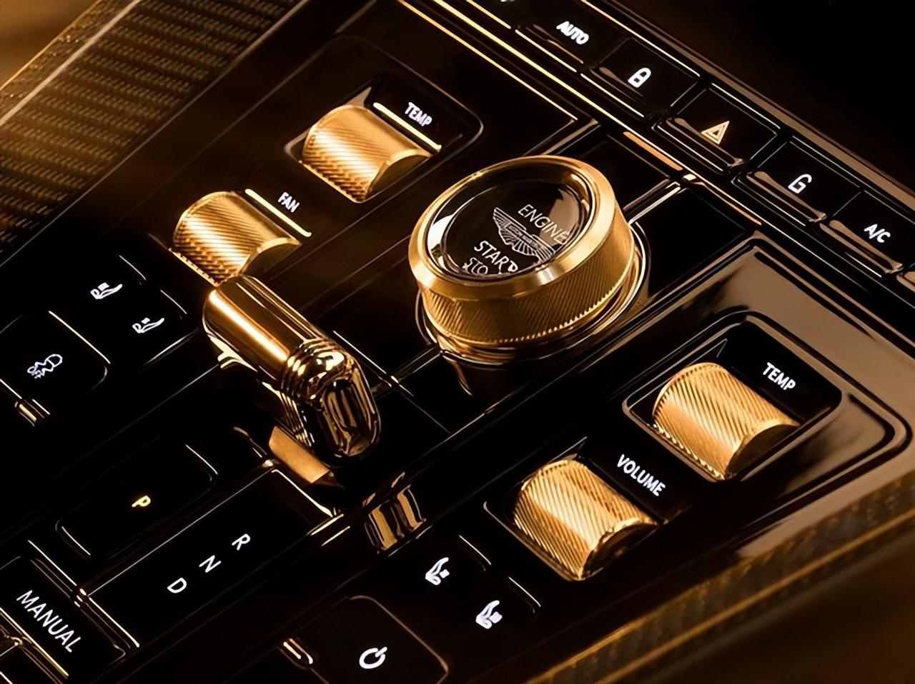 內飾配備了專屬的Goldfinger 60周年銘牌,周圍采用威爾士親王點陣穿孔圖案進行裝飾,充滿了藝術氣息。迎賓踏板上還有編號XX/60的限量版浮雕。大面積帶有孔洞設計的高檔真皮材質的鋪陳,還有大量碳纖維裝飾面板的交替運用。中央操控島也更加符合“金手指”的主題,車內的換擋撥桿、啟動按鈕和滾輪采用了18K黃金材質,進一步提升了內飾的豪華質感??萍几蟹矫妫撥嚺鋫淞巳壕x表、支持觸控操作的大尺寸液晶屏(預計將會采用了中控液晶屏+副駕駛顯示大屏的組合)。