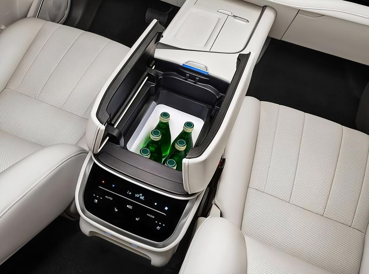 車身輪廓與現(xiàn)款幾乎一致,車頂加入了銀色全尺寸行李架和鯊魚(yú)鰭樣式的天線,車窗采用了古典的輪廓設(shè)計(jì),C柱還加入了霍氏拐角設(shè)計(jì),車窗邊緣的銀色鍍鉻裝飾條與茶色隱私玻璃形成了鮮明的對(duì)比。彈出式的門(mén)把手,筆直的高腰線貫穿了整個(gè)車身,內(nèi)凹的車門(mén)型面,都有利于降低整車的風(fēng)阻系數(shù)。車身的長(zhǎng)寬高分別為5156/1980/1805mm,軸距為3050mm。車身三圍和軸距與現(xiàn)款車型保持一致,車內(nèi)采用了6座布局,舒適配置方面,新車擁有零重力座椅,Nappa真皮,12向電動(dòng)調(diào)節(jié),第一排和第二排座椅通風(fēng)、按摩。配備零下6度到50度的溫控車載冰箱。
