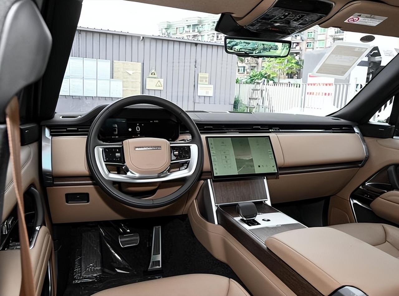 內飾采用焦糖棕色和米色相搭配,前排座椅、中間扶手、儀表臺等位置呈現米色,大面積溫莎真皮材質的交替鋪陳,再加上磨砂質感的銀色金屬裝飾面板、亮黑色鋼琴烤漆裝飾面板以及中央扶手箱附近的黃花梨裝飾面板,提升了整車的奢華感。中控臺配備了四輻式多功能方向盤和銀色換擋撥片,12英寸彩色全液晶儀表、雙10英寸彩色中控屏、HUD抬頭顯示,搭載了路虎家族最新的車機系統,科技感也與時俱進。貫穿式空調出風口、HUD抬頭顯示、18+1英國之寶高級環繞音響、前排發光照明門檻、四區空調、帶冷卻手套箱、四區自動空調的加入,也提升了整車舒適度。