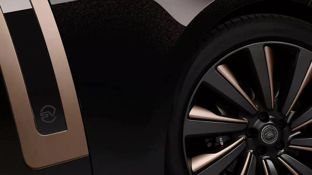 車身依舊是路虎攬勝SV經典的輪廓設計,只不過加入了特殊的變色車漆涂裝,在一般狀態下呈現黑色,但是當被陽光直射的時候,將呈現出暗紅色,凸顯其高貴的身姿。古典的黑色A柱與黑色車頂融為一體,展現出懸浮式車頂的立體感。前翼子板處加入了玫瑰金色的裝飾和SV的浮雕,再加上筆直的高腰線,也顯得更加穩重、氣派。黑色的后視鏡外殼、隱藏式門把手以及23英寸的鍛造合金輪圈,讓新車的氣場得到更好的展現。車尾造型方正、古樸,通過不同種材質的交替混搭,也帶來更加豐富的層次感。貫穿式的尾燈和醒目的“RANGE ROVER”英文尾標,也極具辨識度。