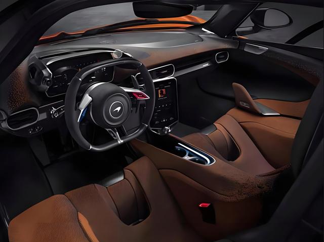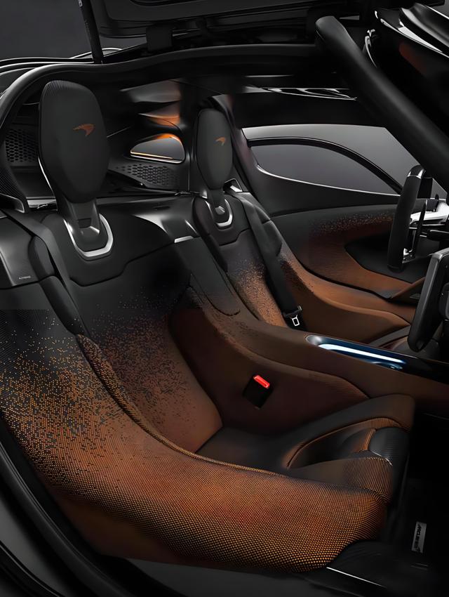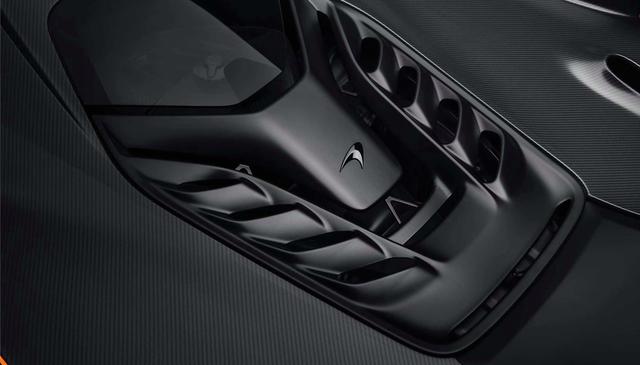 車身更加優雅,配備了邁凱倫Anhedral鷗翼車門,黑色的碳纖維車頂與橙色的車漆,這才是邁凱倫最經典的專屬配色。搭載邁凱倫Aerocell碳纖維單體結構座艙,整車的線條充滿了蓄勢待發的氣勢。雙五輻輪圈造型十分炫酷,前剎車配備了6活塞卡鉗,而后剎車則配置了4活塞卡鉗,兩者均采用鍛造單體設計。車尾配備了大尺寸后擴散器和主動式長尾擾流板,該擾流板可由車體向后延伸達300毫米,整車下壓力高達1000公斤。車尾窗依舊采用了透明的樣式,能夠看到內部的機械結構,兩側還有百葉窗式的鏤空設計。