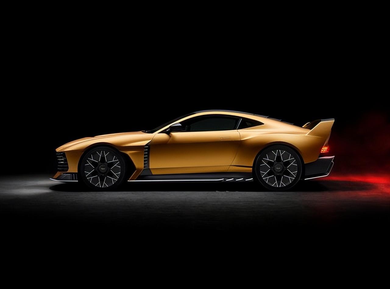 車身采用了GT跑車的輪廓設計,弧線形的車頂搭配著大量若隱若現的腰線,再配上固定后視鏡設計,黑色的車窗裝飾條、無邊框車門、隱藏式門把手設計和21英寸的鎂合金輪圈,還有個性化十足的寬體碳纖維側裙,展現出了十足的運動氣息。車尾配備巨大的固定式大尾翼,后車窗展現出百葉窗的經典樣式,造型夸張的后保險杠采用了多層次感的碳纖維裝飾面板,科幻的尾燈更加特別,辨識度更高。中置四出的排氣和兩側橫向定風翼設計,更加符合空氣動力學效能。充滿了戰斗氣息。