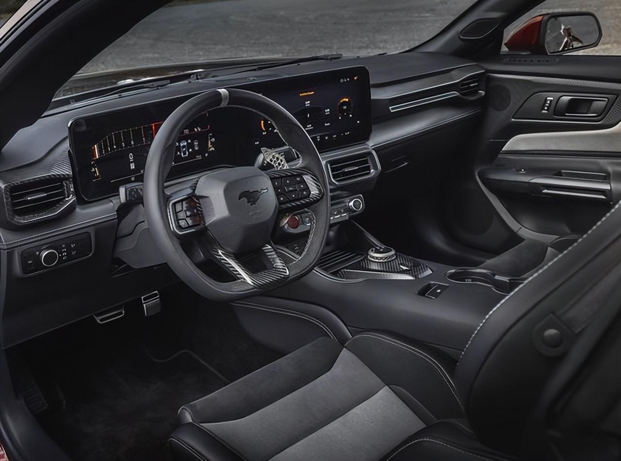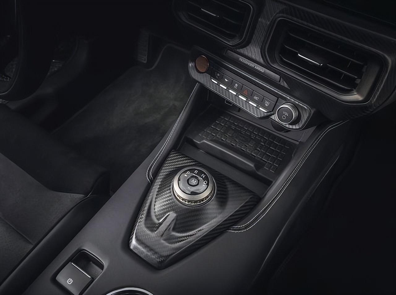 內(nèi)飾的設(shè)計(jì)布局與普通版Mustang有著異曲同工之妙,采用13.2英寸+12.4英寸組成的雙聯(lián)屏,并采用大量的物理按鍵和硬朗的線條勾勒。前排配備了翻毛皮、碳纖維和真皮材質(zhì)的RECARO桶裝賽車座椅帶有座椅加熱和通風(fēng)功能,有著很好的支撐性和包裹性。小尺寸GTD賽車方向盤和鈦金屬材質(zhì)的圓形換擋旋鈕換,玩的就是機(jī)械感。車內(nèi)采用了大量碳纖維和Alcantara材質(zhì)搭配而成。值得一提的是,在座椅后方,懸架系統(tǒng)采用橫置交叉排列,并通過碳纖維以及透明蓋板裝飾,運(yùn)動(dòng)氣息拉滿。升級(jí)標(biāo)配了B&O高端音響系統(tǒng),包含900瓦功率驅(qū)動(dòng)的12揚(yáng)聲器。也將會(huì)帶來殿堂級(jí)的高級(jí)享受。