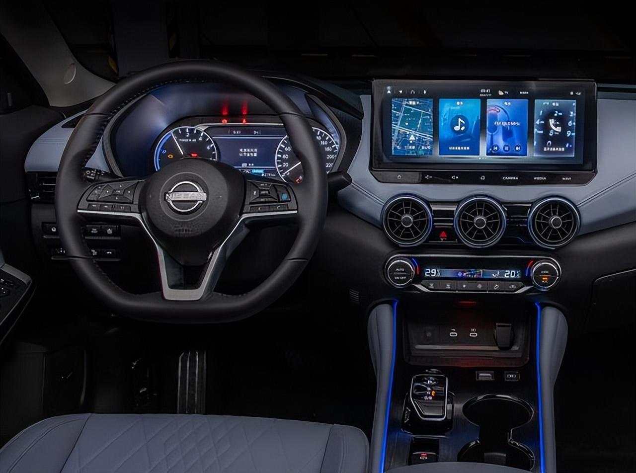 內(nèi)飾提供了多種配色方案,再加上大面積軟性材質(zhì)的360度包裹,雙色的搭配是新增的選擇,加上藍(lán)色氛圍燈的助威,車(chē)廂泛著幽幽藍(lán)光,味道一下子就對(duì)了。最令人滿意的還要屬它配備的5個(gè)帶有菱形紋路的沙發(fā)座椅,再加上充足的駕乘空間,“移動(dòng)沙發(fā)”的美名確實(shí)名副其實(shí)。多層次感的中控臺(tái)向左右兩側(cè)無(wú)限延展,拓寬了整車(chē)的橫向視覺(jué)感受。全液晶彩色儀表和懸浮式中控顯示屏,搭載了全新的Nissan Connect 超智聯(lián)系統(tǒng),語(yǔ)音控制車(chē)輛、遠(yuǎn)程控制車(chē)輛。中控的出風(fēng)口造型變成三個(gè)圓筒,視覺(jué)沖擊力挺突出,也增添了更多的運(yùn)動(dòng)氣息。