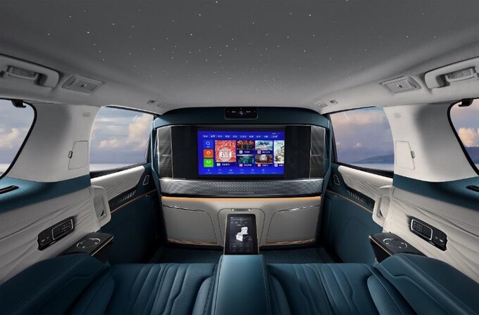 四座私享版車型更是創新設計后排座椅電動長滑軌,行業首次實現四座車型后排座椅帶滑動功能和迎賓模式,可實現320mm電動調節,進出更便捷有儀式感、空間調節更自由。而六座/七座車型則全新配備156吋后艙吸頂智慧屏,屏幕具有0~150度大范圍折疊角度,支持1000多種應用APP下載,后排坐姿、躺姿都可擁有最佳觀看角度,打造了集會議、觀影、玩游戲于一體的多功能移動空間。