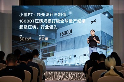 小鵬P7+基于16000噸超級壓鑄設備打造,打破了全球最大量產壓鑄規模記錄,并首次實現國內大鑄件及鋼側圍的車身量產。全新工藝讓車身減少2000個焊點,集成零件167個,實現30kg的減重,帶來8公里的續航提升。