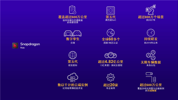 截至目前,Snapdragon Ride平臺已在全球60多個國家和地區完成驗證,構建了覆蓋超過600萬公里獨特車輛與交通數據的場景目錄,測試總里程超過4.82億公里,為安全可靠的量產提供了數據支撐。