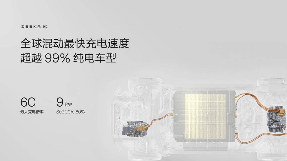 1.全棧900伏高壓架構,極氪9X用上了70度的6C超快充電池,純電續航為380km,20-80%補能是9分鐘(小電池版本);