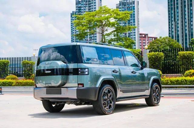 外觀上,采用的是方盒子造型,引擎蓋有多條筋線,車頭采用一字形日行燈,雙層分體式車燈設計,黑色高光裝飾板連接兩側前大燈組,飽滿的前包圍,硬派越野風格十足,左右兩側還提供了霧燈。