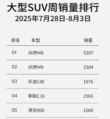 兄弟們,樂道L90這回是真火了啊。通過權威機構發布的銷量數據來看,樂道L90在大型SUV周銷量排行榜里,已經排在了第三位,而前面則是那2款最炙手可熱的車型,問界M8和M9。值得一提的是,樂道L90上市才3天,其在終端的新車交付量就已經達到了1976輛(交強險上險數據),由此可見,國人對于這臺車其實相當喜歡的。