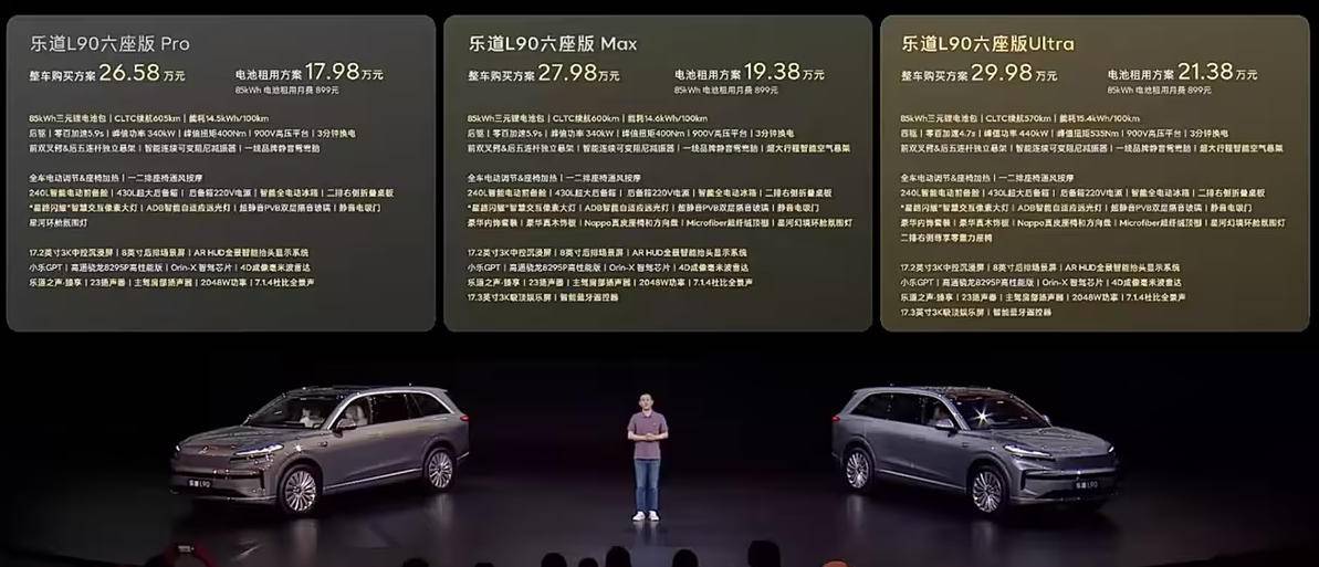 至于為啥L90能火且熱銷,我覺得主要還是因為這次蔚來廠家給樂道L90定出的價格給力。要知道,整車26.58-29.98萬、租電17.98萬元起的銷售價格,可是讓很多想買臺大尺寸家用SUV的客戶都為之心動了起來。再加上這車定位大型SUV,該給的配置和功能那也是給得很足,所以熱銷便成為了一個水到渠成的事情。